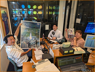 黒崎楽器社長の黒崎雅夫氏を迎えての60分。言わずと知れた県内最大手の楽器店の社長さんである。今回は我々のNPO法人徳島ミュージックユニオンの理事としての出演と相成った。10/26(日)両国橋クルーズ船乗り場特設ステージで開催される徳島ファミリーバンドフェス、11/24(祭)に開催されるいい夫婦の音楽祭出演者募集、どちらも担当が黒崎氏なものでそのPRが主な役目!両方とも発案は黒崎氏、ファミリーバンドフェスについては約15年の歴史を持つ。我々のNPO法人徳島ミュージックユニオンでは、発案者、もしくは言い出しっぺがやらねばならないという暗黙の了解が存在する。過去2回我々が徳島で主催した(BLAST)なんぞは、四国放送も徳島新聞社もすっ飛ばし、キョードー東京から依頼がきた・・、理事会にかけると(林がやりたいんだったらやったら???)でちょん、結局大変な目に遭ったが大成功、今となってはいい思い出。このファミリーバンドフェスもいい夫婦の音楽祭もキーワードは笑顔!ほんと裏方はしんどいものだが、家族やら夫婦が、幸せそうなとっておきの笑顔で(ありがとう、おかげさまで楽しかったです)(よかったですね、ではまた来年!)そういう会話になると、今まで重かった足も突然軽やかになったりするのである。最後の理事長挨拶では、毎回(こんな家族たちがいる徳島ってまだまだ捨てたもんじゃない)このセリフが恒例となっている。今まではホールひとつも造れない徳島市に対して愚痴のひとつやふたつ、みっつやよっつ、こぼしていたのだが、おそらく生きている間に拝むことはないだろう!と割り切ってしまって、徳島に対する情熱は冷めてしまっていた。だが毎年この時期なるとに(明日の徳島を担うこどもたちのためにも)と沸々と湧いてくるものがある。もちろん黒崎氏はその数倍のマグマを溜め込んでいるはず。ささやかなイヴェントでも、続けることに意義がある。ほんと継続は力なり!である。