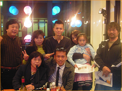 徳島ナイフクラブ会長 松尾栄氏、ミクロふみあきと愉快な仲間達としてふみあき氏と母親の芳江さん、ふみあき氏の妹の姑 はるみさん、友人のプロ雀士 山口明大氏の5人がお客様。この5人!どう考えても血縁関係の3人を除いてまったく接点がない、これどうすんのよ!!てな具合で開始。おまけにサシスタント悪党み〜なが来ない。これまたどうすんのよ??