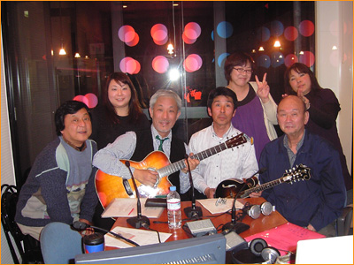 4/3のNPO法人(徳島ミュージックユニオン)が開催する(東日本大震災支援・お花見ライブ)に出演する蛭子山ホームズのリーダー尾崎氏、浜氏、追っかけ?の佐次氏をお迎えしての60分。蛭子山ホームズとは・・・ギャグではなくジャグバンド。ジャグ???なんだそれ???ジャグとは、ウイスキー等を貯蔵する瓶のことだが、口に息を吹き込むことによって低音楽器として使用され、また身の周りの洗濯板、桶、たらい等から手製で楽器を作り、演奏される形態のこと。それにギター、フラットマンドリン等が加わったバンドが蛭子山ホームズである。