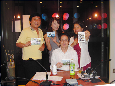 お客様はライブハウスAVANTIのオーナー、早川寛氏。つれあい?のはるちゃん。インストデュオバンドの北斎のお二人。体育会系の山口景子さん。アシスタントの橘敦子さん、ぴぃさんと総勢8人。15周年記念放送がビッシリのスタッフは入れ替えが60秒しかない現実に振り回され、顔がヒクヒク!
