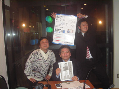 お客様は、三村かずや氏、保護者兼同級生の原みえこさん、石本みさこさんの3人。林の番組には数回出演している三村氏、いつ来てもいじられる!というか、遊ばれる!というか・・・。今回もダンスと歌の発表会のPRに来たのだが・・・、番組冒頭から映画の話に。そう、彼はエキストラでTV番組やら、映画やら出演しまくっている・・いわば横丁のスター???同級生といいながら、まったく存在感のなかった彼の出演作(名取裕子の後ろに座ったエキストラ)に、石本さんが(あれって同級生ちゃうの?)と気がついたのが、卒業してかなり経った最近だとか。で、多くの女性ファン?同級生の女性達だが・・・、見ておれん!ということで保護者みたいになったんだとか。それも最近だとか。映画(帝都物語)の怪人役・島田久作さんとクリソツの個性の塊だが、なんせ活舌が・・・・。彼の代表作は、セリフが8文字あったとか・・・。(そうやなぁ、そうやなぁ)らしいが10文字ではないか!原さんは鳴門で海産物で仕事をこなし、石本さんはパン工房で頭角を現し、彼女達からみれば、放っておけないのかもしれない。本人は、徳島を代表する阿波踊りの有名連に所属し、今回の徳島マラソンにも挑戦するヤル気満々男なのだが・・・。でもただの勘違いではなく、実に堂々と自分の意見を述べ、最後にひっくり返って困った顔に・・・、(なんとかしてあげないと)という母性本能の琴線に触れ、保護者が増えていく!!ある意味ファンが増えているではないか!林も学習しよう。よ〜〜し、明日から死んだフリだ!!