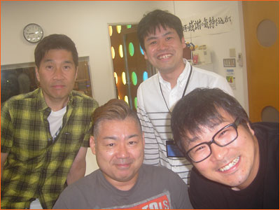 お客様はおなじみ、林の偉大なる後輩 住友紀人氏、そして住友専属ブロガーの山本光春氏、徳島文化振興財団より宇野よしのり氏、ロックバンド The春夏秋冬よりベースのヨースケ君の4人。9/3に開催される住友紀人プロデュースのTokushima Musician’s Fes2017のPRに来ていただいた。彼が担当してはや5年。彼の率いるGreatest Bandは日本の超一流揃い。特に今回は日本Jazz界の頂点・エリック宮城(tp)が参加する。もちろん他のメンバーも超一流だが、我々ラッパ族には神様以上の存在である。サニーサイドのラッパ陣だけにクリニックをしてくれた経験とか、国文祭での前夜祭宴会でサニーサイドに加わって一緒に演奏してくれたことなどなど・・・いやいやエリックさんのことばかり書きそうな予感・・・ここで打ち止め。そんな超一流をこともなげに集め、指揮する住友君ってのは・・神様以上???その住友君がオーディションで選んだ徳島の精鋭達4組。今回はその精鋭達のバック演奏をGreatest Bandが務めるという、普通のコンサートでは(ありえへん)構成・・。普通は同じステージに上がっても、素人さんとプロは、余興でコラボはあったとしても、ほとんどの曲に日本のトップ達が伴奏する!ってのは、まじで(ありえへん!!)。第一プロが参加するわけがない。そこをサラっと徳島に集め、素人さんのバックバンドを務めるってのは、日本広しといえども、できるのは住友君くらいか!