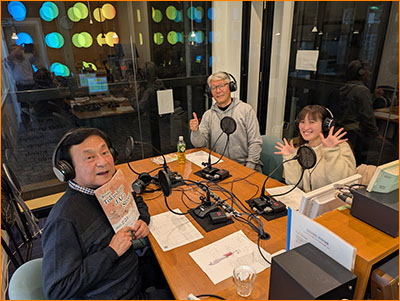 お客様は講師、俳優、芸人、元コント集団ザ・ニュースペーパーメンバーの桑山元氏、自称:野菜の妖精の高井綾子氏のお二人。桑山氏は、商工会の講演会をこなして、そのままスタジオに駆け付けてくれた。昨年6月以来久々の登場である。野菜の妖精:高井さんは桑山氏の徳島のマネージャー役で、送迎からすべて段取りしてくれた。売れっ子・桑山氏・・・正面からしゃべりを見ていると、実に口元の動きが鮮やかである。さすがアナウンス教室でプロの芸を身に着けただけある。発音も正確で、こういう発音をすると人によく伝わるんだ!というお手本である。ディレクターKによると、マイクレベルの針も一定していて、ぶれないだとか・・・。逆に林はそういう訓練を受けていないため、28年も番組やってるにかかわらず、針は振れまくりだとか・・・。そういうところにも素人とプロの差は現れるんだ。ち〜とばかり勉強になった。明日からさっそく(あえいおう・・・・)の練習??桑山氏は(ちょい足しトーク&雑談術)という本を出しているが、(相づちは愛づち)とばかり、56の絶対受ける法則を紹介している。どこを開いても簡潔、わかりやすい文章で、もひとつ試験に出そうな??箇所には最初からアンダーラインが引いてある。どこからでも読める。さすがに本屋の棚からは消えたが、アマゾンではまだ購入できるらしい。でも何と言っても立ち読みが魅力なのだが・・・。興味ある方は検索してみてはいかが?サインが欲しければ、次回番組出演時にご持参いただければ、実に丁寧な挨拶込みのサインまでいただける・・・はずである。林の感想としては、ズバリ・・・さすがしゃべりのプロである。頭の回転の速さはもちろんのこと、相手の言葉や雰囲気を瞬時に感じ取り、それに応じたレスポンスで応答する・・・プロの話芸とは・・こういうのをいうのだろう。もちろんよく勉強してるし。恐れ入りました!!