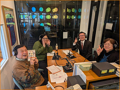 株式会社KIHALの代表取締役 深石浩史氏をお迎えしての60分。なんだ、KIHALって?と思うが、木に春と書いて(きはる)、これを読むと(椿)となる。そう深石さんは阿南市の椿町に本拠地を置く会社の社長さんなのだ。ゲストハウスを椿町に構え、またイベント企画、運営、マーケティング、などなどいろいろな仕事をこなしているそうな。出身は大阪ながら定年を機会に椿町に流れて?きたそうな。(儲かりまっか?)の問いに(ぼちぼちでんな)はさすが大阪人。くるくるなるとでもイベント企画を担当しており、3代目アシスタントの大塚み〜なともその関係で知り合ったらしい。まだ設立1年の若葉マークの会社ながら、深石さんの行動力は凄そう・・・、イベント企画に忙しいと思いきや、今は復興常備食に力を注いでいるそうな。復興常備食?なんだそれ、要は被災地の食糧のこと。1日くらいならカップラーメンやらパンでも過ごせるが、それが毎日となると、たまったもんじゃない。肉喰いたい、魚喰いたいって食欲は必然である。そこで徳島の野菜やら阿波尾鶏、椿町産のチリメン、ハモなどを調理してフリーズドライにして、備蓄しておく、被災地ではそれを解凍して、食する。能登にはキッチンカーを走らせること、実に6回。確かな手ごたえがあったとか。調理担当はアシスタントれみちゃんの弟君。調理師免許取得は当然のことながら調理しながらその細かいレシピまで製作中だとか。KIHALの行動に漁協とか農協も協力して、知事までもが(やりましょう)と協力のかまえだとか。いかにも順風満帆みたいだが、深石さんは実に人の好さそうな、好感の持てる人間、騙されないように!といっても東京やら大阪でイベント制作に携わってきた人種だから、ちょっとやそっとじゃくじけないだろうが・・・。頑張ってほしいものである。