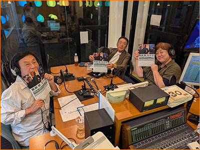 スチールパングループ パンドルより奥村真紀さん、長戸りちこさんのお二人をお迎えしての60分。パンドルは4/21に万博会場で演奏し、世界の人たちから大絶賛、公演大成功を引っ提げての番組出演と相成った。特筆すべきは、県や国の依頼ではなく、自分たちで応募し出演枠を得たということ。出てあげる、出してください、出してやる・・・いろいろな表現方法があるが、(だしてください)から始まって書類選考を経て(出てもいいよ)と落ち着いたらしいが、演奏が終わって片付けし、さて他のパピリオン見学だ・・・ではなく、パピリオン予約の都合で一度退出し、再度入場券を買って会場に入ったとか・・。ちっとは融通利かせてくれても・・・と思ったが、広場で演奏する何百、何千という人間にその都度融通利かせたらキリがないのは当然か。それにしても会場内はいろんな世界の人たちが往来し、聴いてくれ、また踊ってくれたとか。トリニダードトバゴの民族楽器スチールパンは、さすが石油産出国、あふれかえるドラム缶に水滴が落ちた時の響きがなんともいえないいい感じだったので、スチールパンが誕生したとか。でもそれを楽器にするには大変な手間がかかったろうに。現にスチールパンをチューニングできる職人は、日本でただ一人だとか。毎日マレットで叩いていたら音も狂ってくるだろうに、でも一か所を直したら、数か所の音が狂い、収拾がつかなくなるとか。ただ持ち運びが大変、楽器といえども元はドラム缶、ハードケースはあるにせよ、場所の確保が大変。長戸さんは、会場までトラックを運転し、一気に運んだそうな。彼女が鉢巻しめたら(トラック姉ちゃん)に見えてきたのは林だけ?パンドルは万代町アクアチッタで練習している。随時見学OKだそうで、まったくの初心者でも、叩けば音が出る!!これってジャズと比べたら無茶苦茶とっつきやすいはず。一度体験してみるのはいかが?