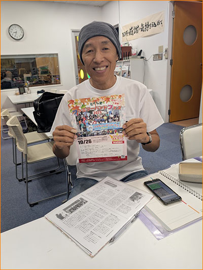 黒崎楽器社長の黒崎雅夫氏を迎えての60分。言わずと知れた県内最大手の楽器店の社長さんである。今回は我々のNPO法人徳島ミュージックユニオンの理事としての出演と相成った。10/26(日)両国橋クルーズ船乗り場特設ステージで開催される徳島ファミリーバンドフェス、11/24(祭)に開催されるいい夫婦の音楽祭出演者募集、どちらも担当が黒崎氏なものでそのPRが主な役目!両方とも発案は黒崎氏、ファミリーバンドフェスについては約15年の歴史を持つ。我々のNPO法人徳島ミュージックユニオンでは、発案者、もしくは言い出しっぺがやらねばならないという暗黙の了解が存在する。過去2回我々が徳島で主催した(BLAST)なんぞは、四国放送も徳島新聞社もすっ飛ばし、キョードー東京から依頼がきた・・、理事会にかけると(林がやりたいんだったらやったら???)でちょん、結局大変な目に遭ったが大成功、今となってはいい思い出。このファミリーバンドフェスもいい夫婦の音楽祭もキーワードは笑顔!ほんと裏方はしんどいものだが、家族やら夫婦が、幸せそうなとっておきの笑顔で(ありがとう、おかげさまで楽しかったです)(よかったですね、ではまた来年!)そういう会話になると、今まで重かった足も突然軽やかになったりするのである。最後の理事長挨拶では、毎回(こんな家族たちがいる徳島ってまだまだ捨てたもんじゃない)このセリフが恒例となっている。今まではホールひとつも造れない徳島市に対して愚痴のひとつやふたつ、みっつやよっつ、こぼしていたのだが、おそらく生きている間に拝むことはないだろう!と割り切ってしまって、徳島に対する情熱は冷めてしまっていた。だが毎年この時期なるとに(明日の徳島を担うこどもたちのためにも)と沸々と湧いてくるものがある。もちろん黒崎氏はその数倍のマグマを溜め込んでいるはず。ささやかなイヴェントでも、続けることに意義がある。ほんと継続は力なり!である。
