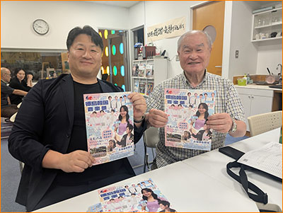 公明党徳島県本部顧問の長尾哲見氏(通称てっけんさん)、在日大韓民国民団徳島県地方本部 姜(かん)団長のお二人をお迎えしての60分。こともあろうに、この日中央政界では公明党と自民党の蜜月関係が崩壊、一躍哲見さんは時のひとに・・・。県選出の国会議員やら県議から電話やらメールが山のように届いたらしい。律儀な哲見さん・・・(今回で出演34回目!)とニコっと笑った。県会議員やら本部長を降りて、命を削るほどの使命感、責任から解放されてはいるものの、相変わらず県政界では重鎮だが・・・。番組のコーナー(哲見の部屋)のお客様が姜団長なのだが、どうしても哲見さんのコメントを求めようとする林、一寸先は闇の政界の話を、それも崩壊した日に徳島県の親分に直接聞けるなんてなんというタイミング。そこらのニュース番組より確実で・・・、といいながらも話は姜団長へ。10/12に開催される韓日国交正常化60周年の徳島韓国音楽祭、このPRにわざわざ来ていただいたのに・・。それも奥様同伴で!大韓民国総領事館の援助もあるが、徳島少年少女合唱団と親交のある合唱団も韓国から招聘し、出演者総数300余名、前日の前夜祭の食事から始まり、宿泊ホテルの手配、会場の文化の森野外劇場の警備やらその他もろもろ・・・すべて姜団長がひとりでやってのけたみたい。経費だってバカにならない。放送中にとある歌手を招こうと話をもっていったところ、ギャラが1億・・・・(円かウォンか、定かではないが)、やめたらしい。韓流ドラマの影響で、出演グループは女性たちに人気があるそうな。それも徳島県民が大好きな入場無料!!おまけに大抽選会があって徳島〜韓国航空券も当たるそうな。神戸総領事館の管轄内でこんなことをやっているのは徳島だけだとか・・。それも7回だと。これは凄いことである。先頭に立って旗を振り続けなければ忘れ去られてしまう、無謀と言われようが、続けてなんぼ!それも手弁当?ここにも林の大好きな素晴らしき大バカヤローがいた!なんとなく嬉しい。徳島も捨てたもんじゃないわな。